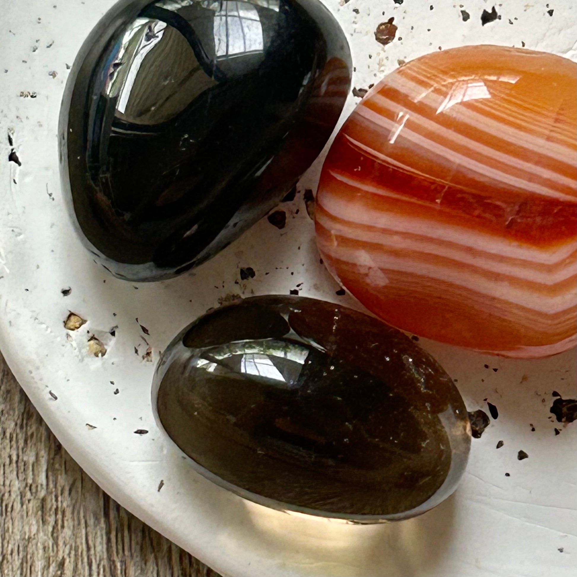 - 1 x Capricorn Crystal Kit (includes 1 x Carnelian, 1 x Smoky Quartz & 1 x Black Tourmaline Tumbled Stone).