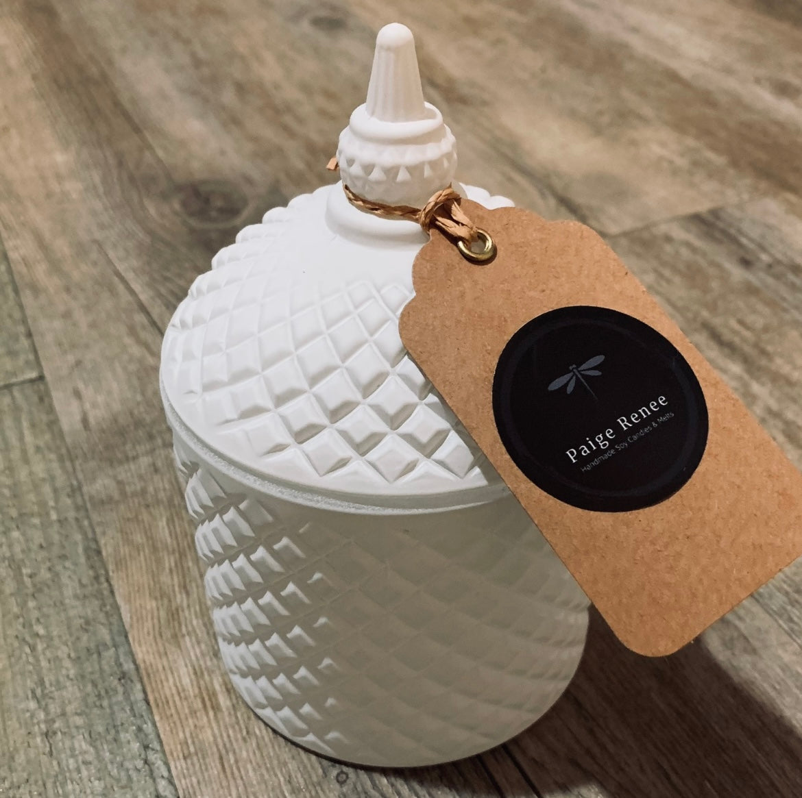 Our luxury White Cupola Candle Jars have a 3D diamond texture pattern, complete with a dome lid.
